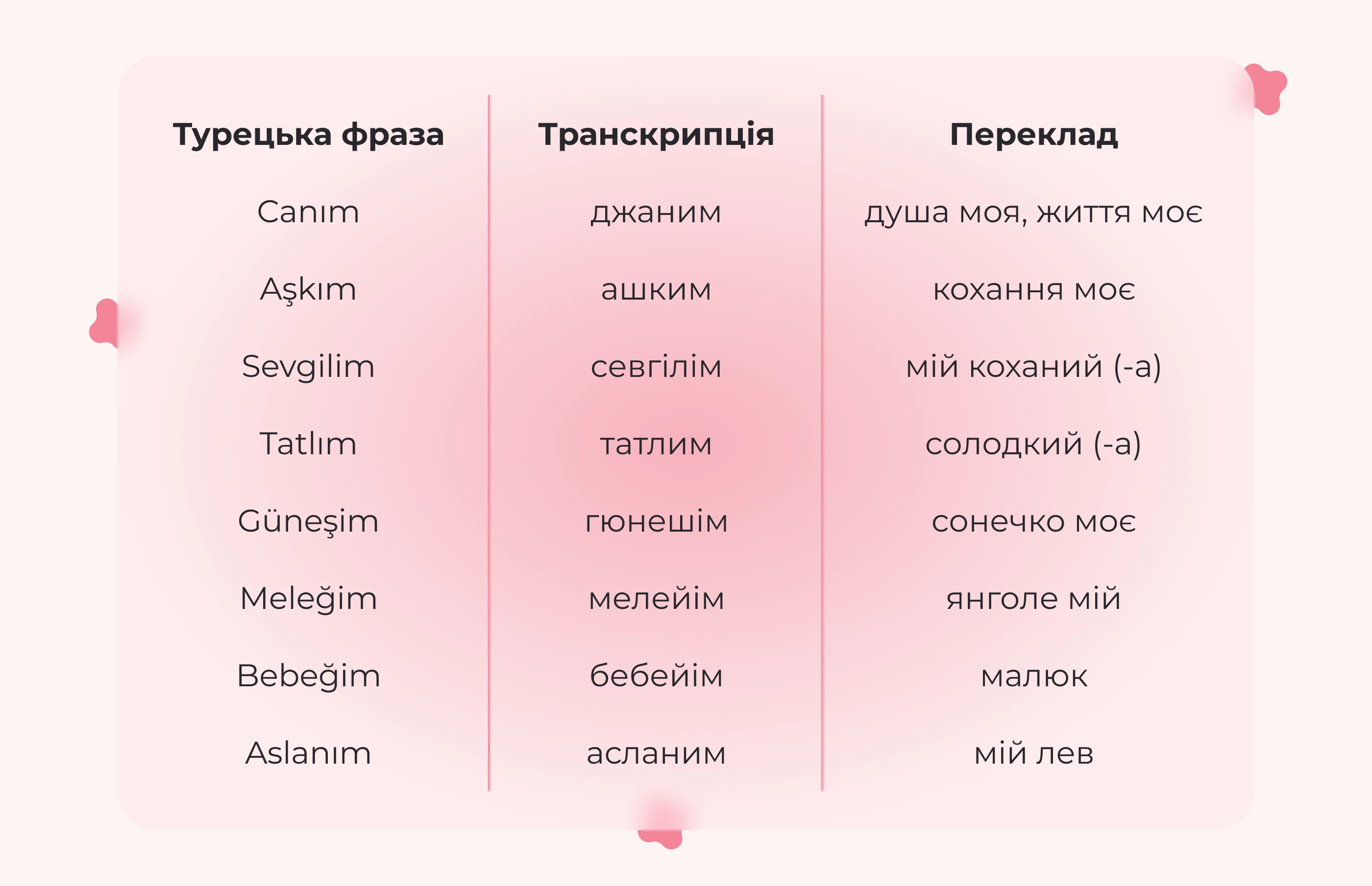 Висновок: турецька мова дає багато інструментів для ніжності. Але, як і скрізь, важливі не слова, а людина, яка їх говорить.